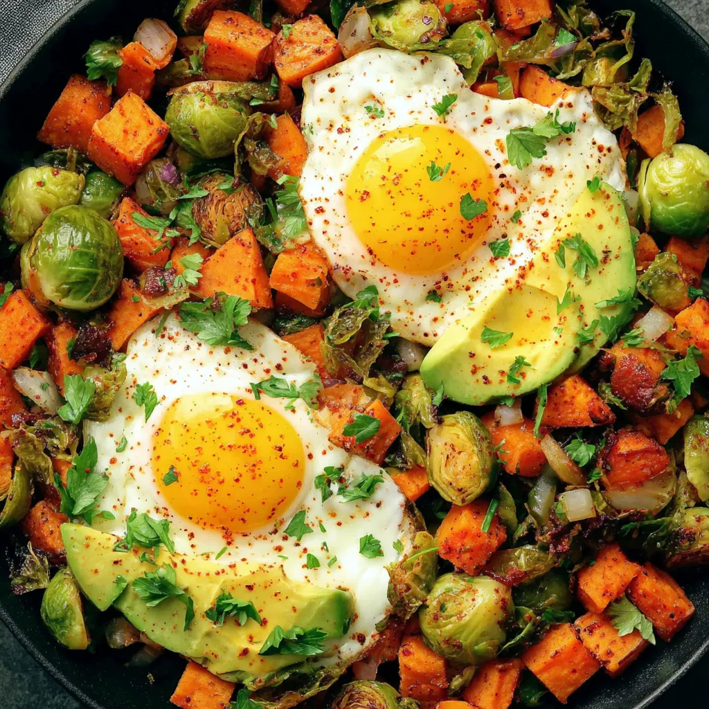 Quick Sweet Potato Brussels Sprout Hash